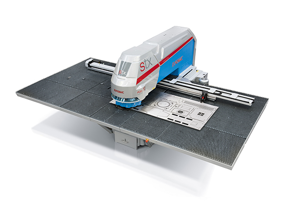 該系列是EUROMAC新推出的高端機(jī)型,是在MTX FLEX系列的基礎(chǔ)上進(jìn)行了升級:機(jī)架加固和加重;Y軸采用雙電機(jī)驅(qū)動。具體表現(xiàn)為: